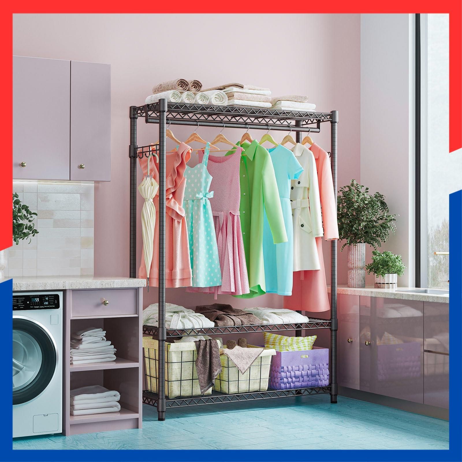 【多くの場所に適用可能】衣類ラックは万能で、玄関、リビング、バスルーム、ガレージ、ランドリールーム、廊下、バルコニー、ベッドルーム、クローク、ショールームのクローゼットなどと互換性があります。