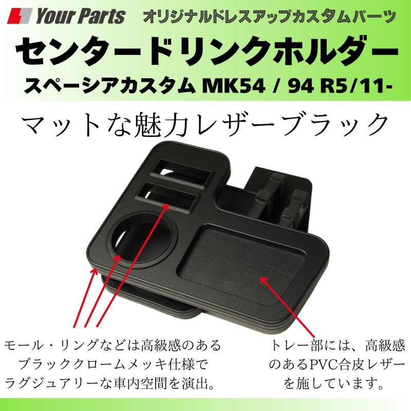 大人の色気 レザーブラック センタードリンクホルダー スペーシアカスタム MK 54 94 R 5 11- YourParts e 0229 小物 スマホ タバコ カップ ホルダー