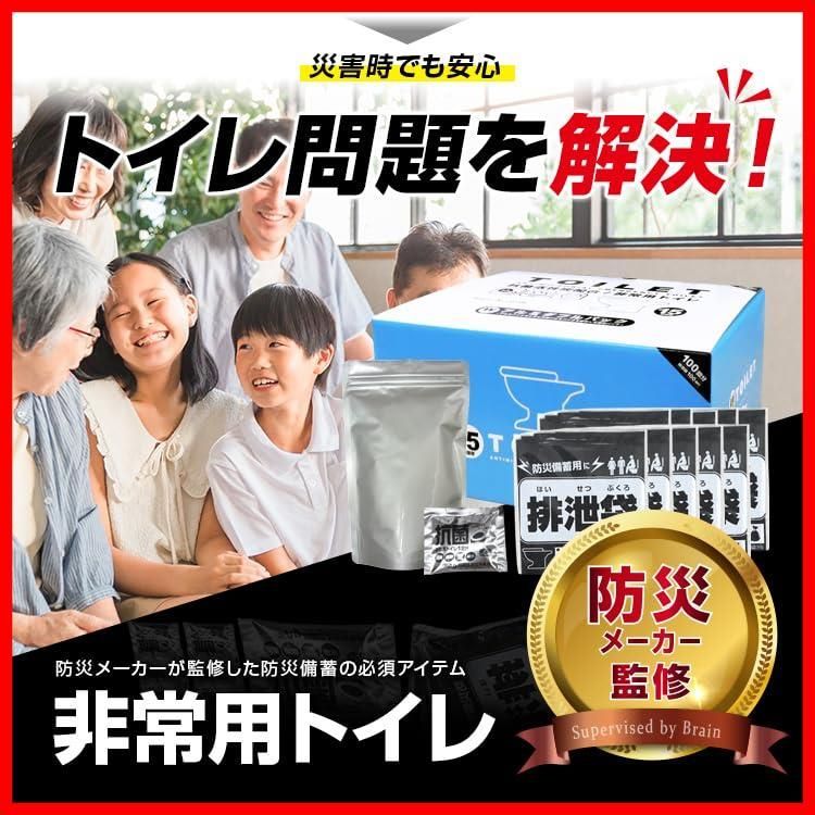 ブレイン【防災メーカー監修:15年保存】BR-966 日本製 抗菌非常用トイレ100回分(排泄袋・持運び袋付) 水なしでも使える 防災 トイレ おすすめ 非常用 凝固剤 安心のアルミダブルパックで15年保存可能!簡易トイレ 災害用 100回