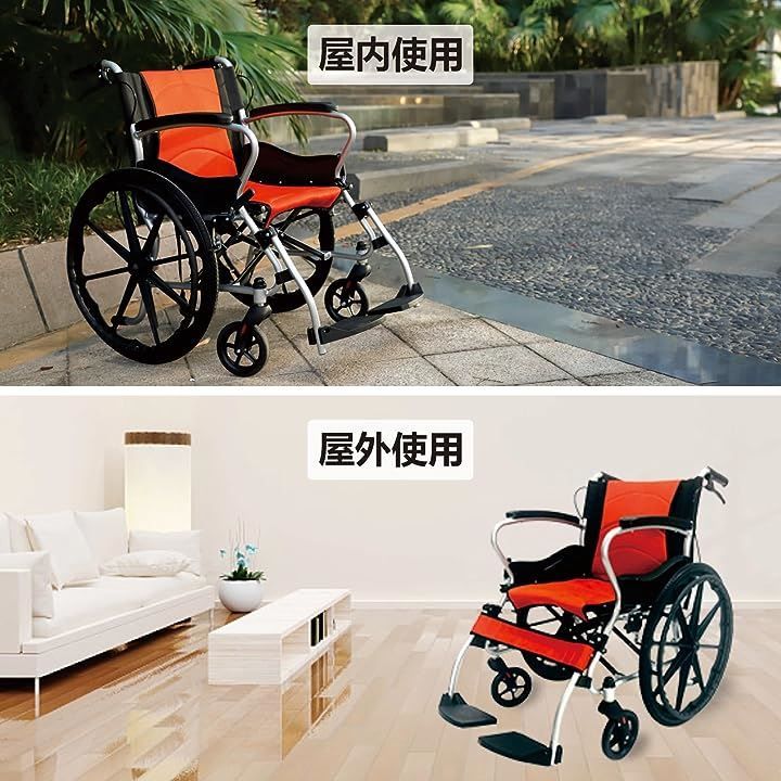 Care-parents 車椅子 自走式車イス 自走兼介助用車椅子 アルミ製 折りたたみ 自用と介助ブレーキ付け 簡易 軽量車椅子 9536 L ビッグホイール オレンジブラック