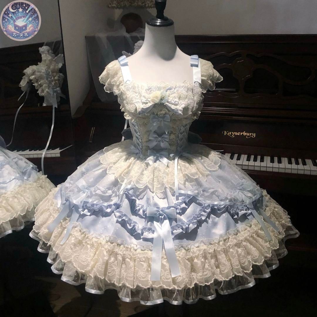 夢見る蝶 ロリィタドレスセット コルセットドレス ジャンスカ 甘ロリ ブルー