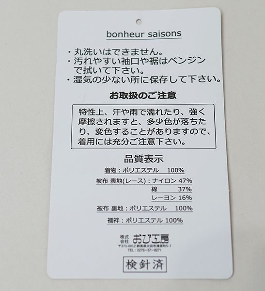 ・被布 表地(レース):ナイロン47% 綿 37% レーヨン 16%