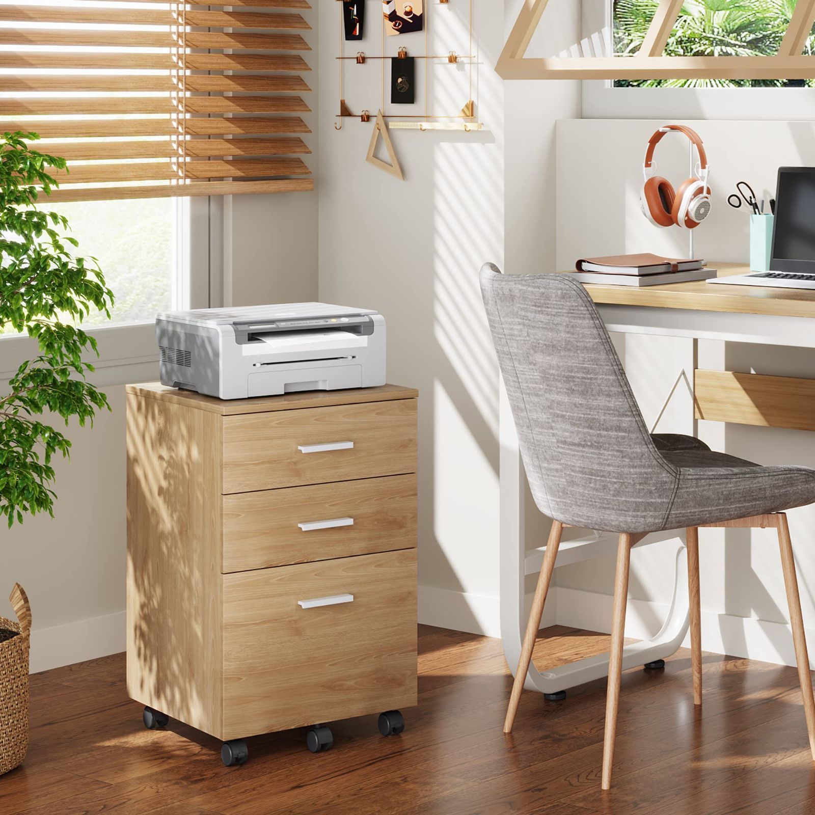 DEVAISE デスクワゴン サイドワゴン キャビネット オフィスワゴン 袖机 木製 3段 A4対応 大容量 キャスター付き 幅400*奥行400*高さ595mm オーク 木目