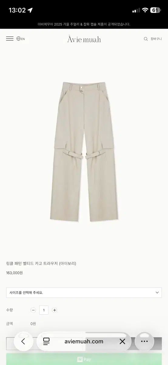 リンクルパータン ベルト付き カーゴスラックス アイボリー