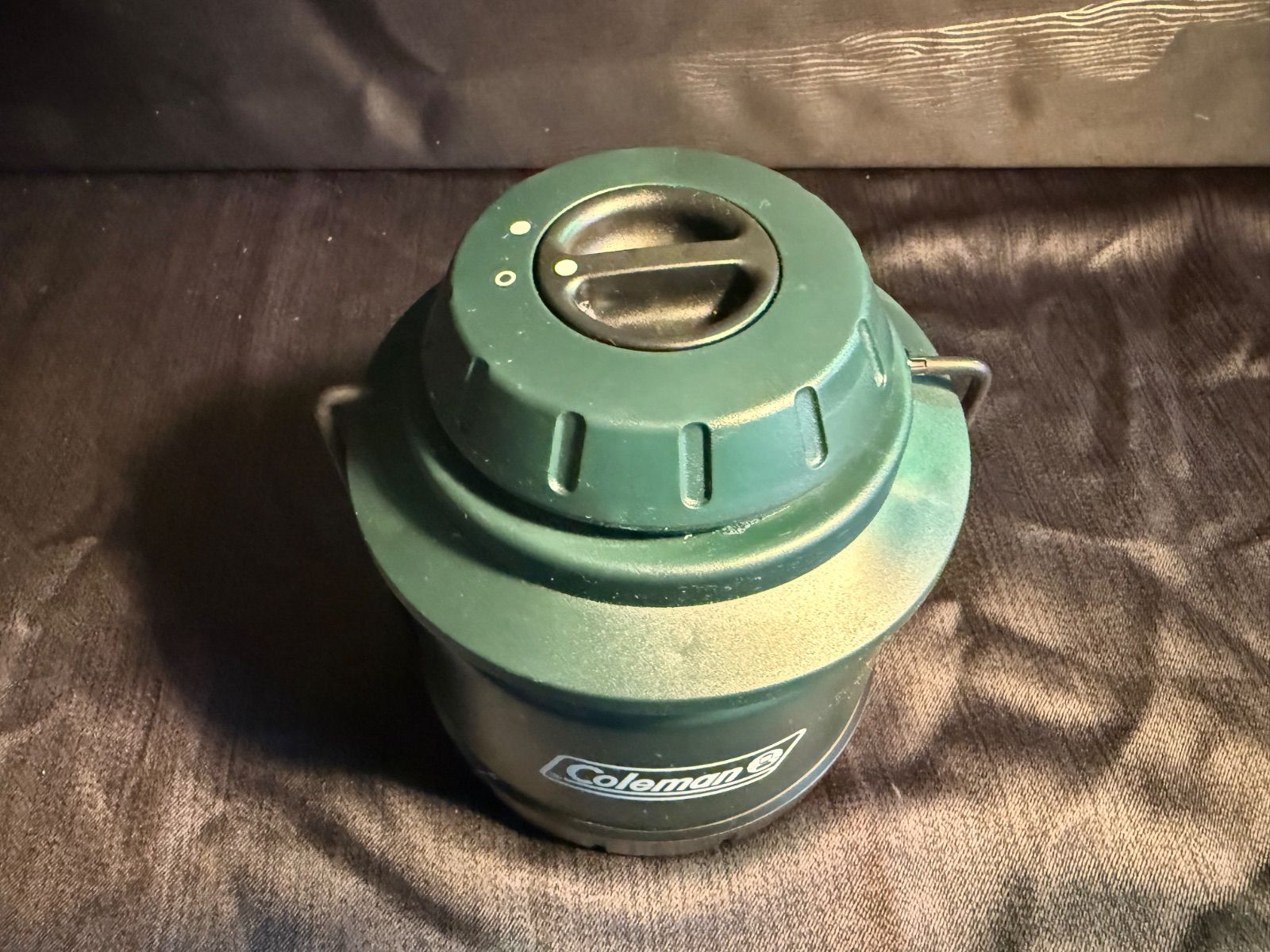 Colemanのハンドル付きの調光可能な円筒形ランタン。