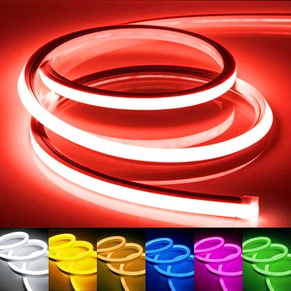 ・【曲がりやすい&IP65防水】LEDネオンライトは高品質素材を厳選して、耐久性と柔らかさがありますので、360°曲がりが可能です。IP65防水で、屋外でも安心してお使いいただけます。 (屋外で使用する場合は、必ず電源コードとエンドキャプに防水処理を行ってください。)