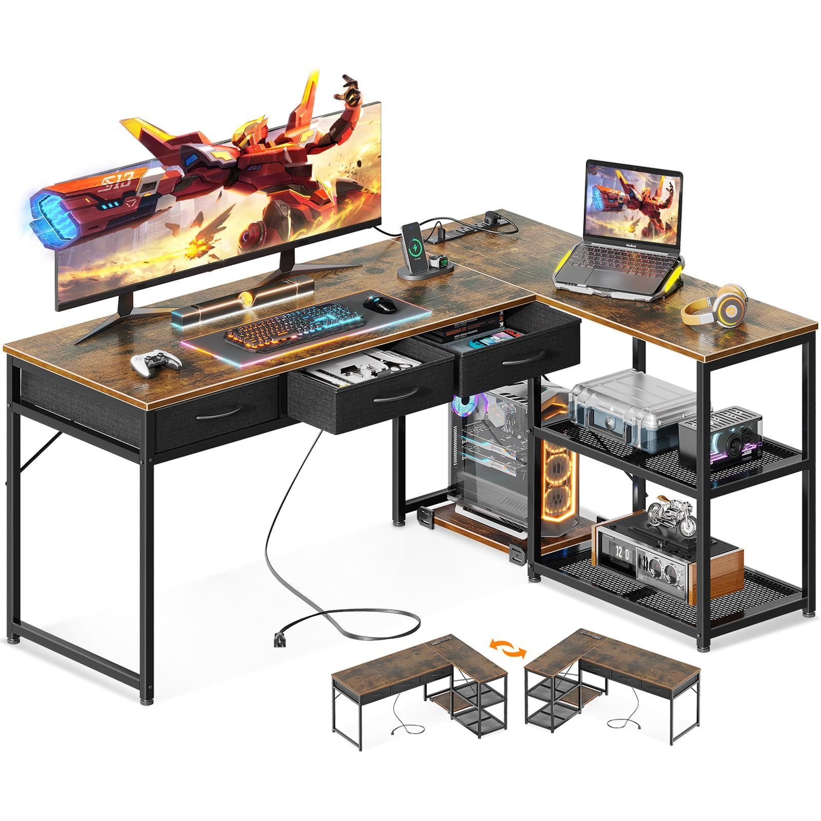 パソコンデスク コンセント付き l字デスク デスク 机 引き出し3杯付き 幅155 pcデスク 棚付き エル字デスク ゲーミングデスク 収納 コーナーデスク オフィスデスク 在宅勤務 ODK 仕事用 組立簡単 ビンテージ