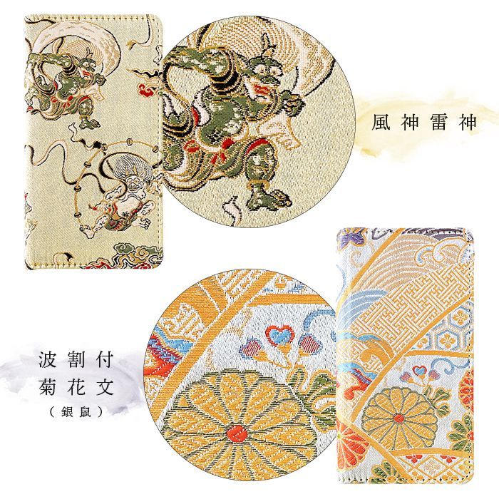 華々しい西陣織の生地を贅沢に使用した手帳型ケースです。