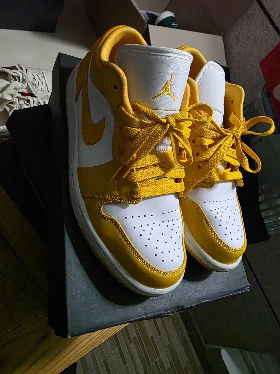 NIKE ナイキ エア ジョーダン 1 ロー イェロー/白 カラーです。実際に着用 5回未満で状態は傷なしです。ボックスも一緒に収納ボックス中です。コメント(※メルカリshop取引では対象外、Mercari窓口まで要連絡)なければすぐに安全決済してください!
