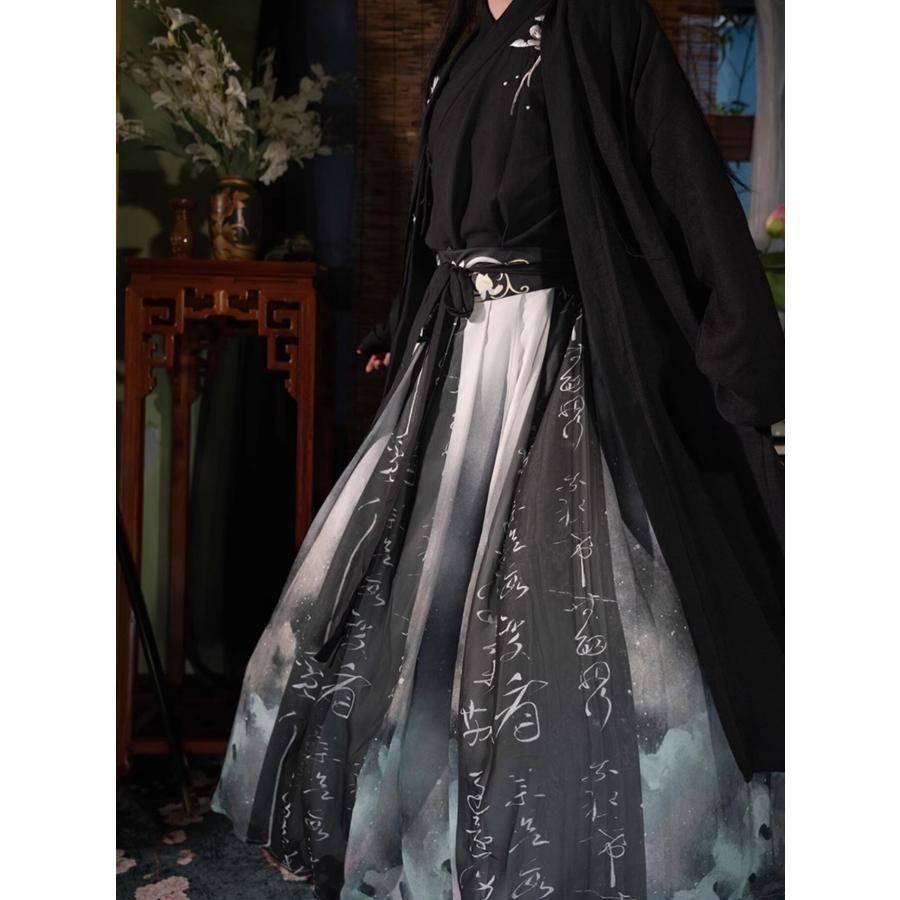 中華コスプレ衣装 黒系 暗黒 メンズ レディース ペアルック 漢服 チャイナ服 宋朝 中国古代 服装 羽織付き3点セット 蓮 ハス 刺しゅう 水墨