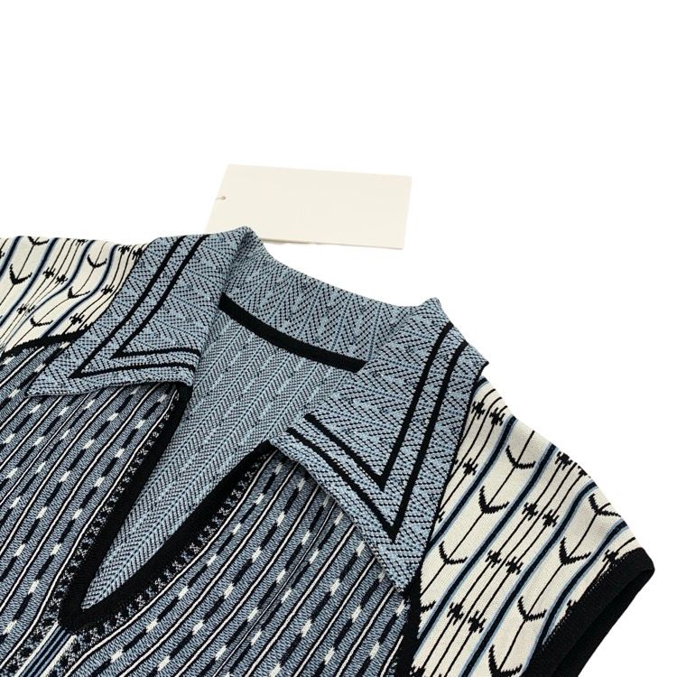 2025 SS Mame Kurogouchi マメクロゴウチ Geometric Pattern Knitted Dress 幾何学モチーフニット ワンピース ブルー 2 MM 25 SS-KN 085