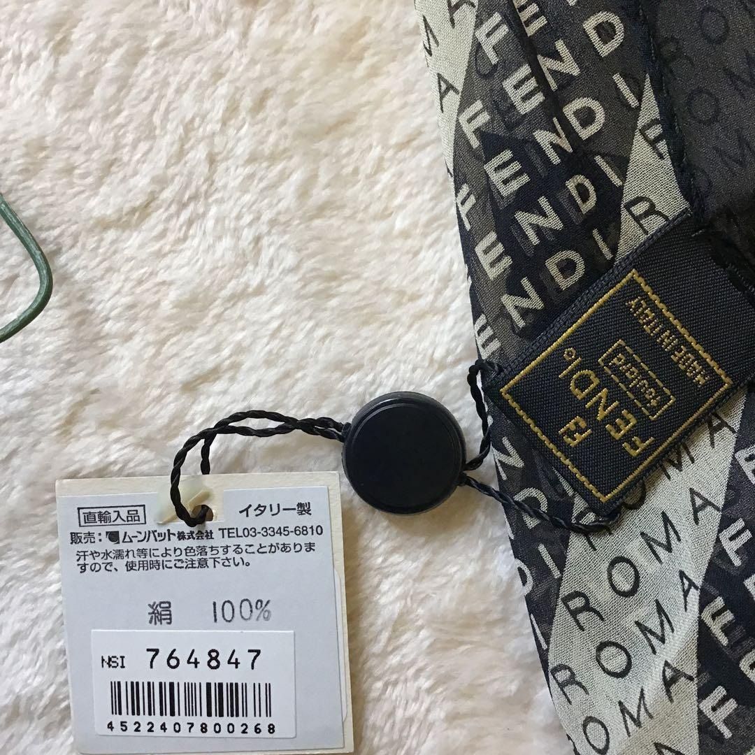 FENDI シルク100 スカーフ ロゴ入り ダイヤゴナルストライプ シアー素材 フェンディ