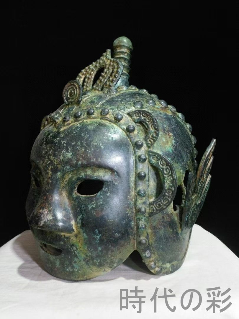 中国古美術 春秋青銅頭兜皇冠面具 軍事具 冠冑造形 彫刻藝術 骨董 春秋 青銅器 頭兜 冠冑 面具 春秋戦国 美術工芸