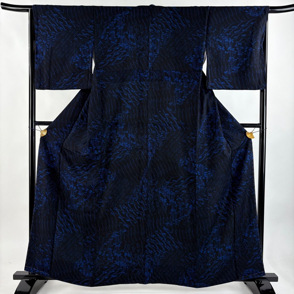 小紋 身丈161 cm 裄丈66 M 袷 川村久太郎 落款 草花 幾何学 黒 正絹