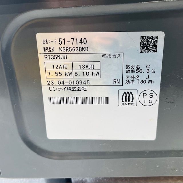 本体のみ リンナイ ガステーブル 都市ガス用 右強火 KSR563BKR-13A ブラック系