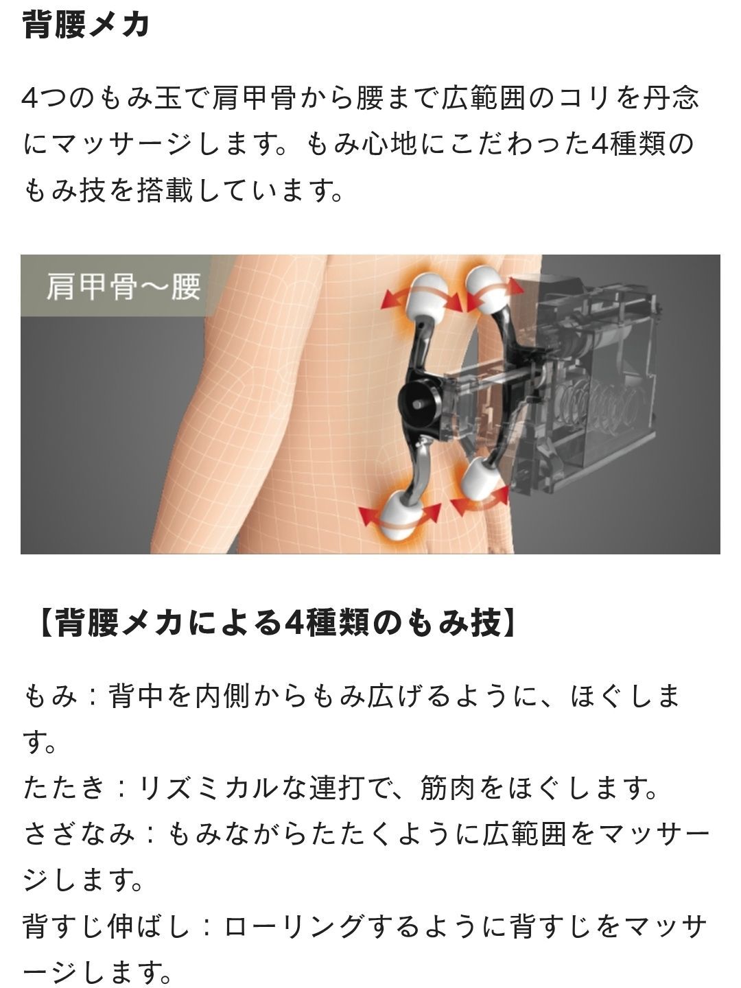 4つのもみ玉で肩甲骨から腰まで広範囲のコリを丹念にマッサージします。もみ心地にこだわった4種類のもみ技を搭載しています。