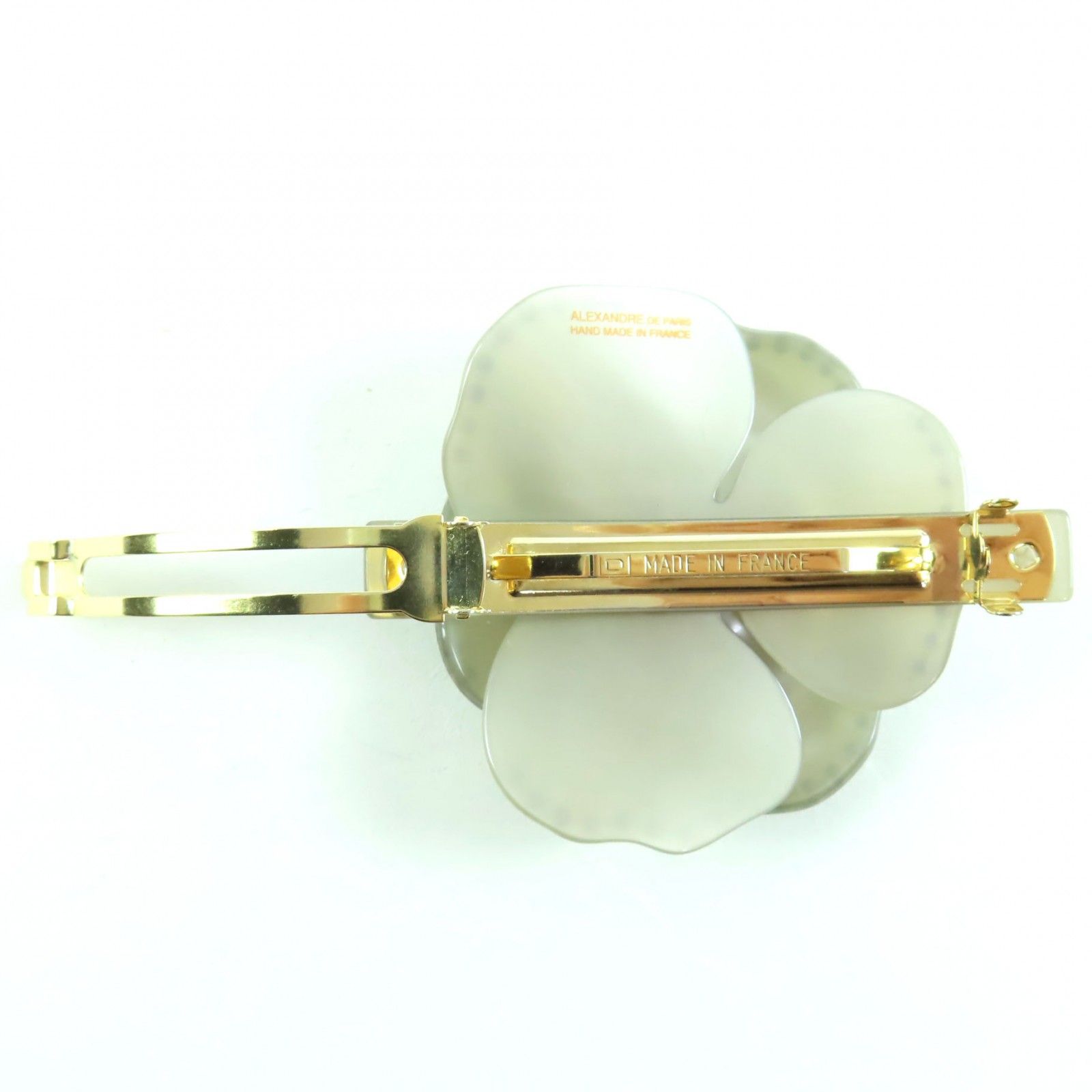 ALEXANDRE DE PARIS アレクサンドル ドゥ パリ クリスタル カメリアモチーフ ストーン装飾 バレッタ グレー 保存袋付き フランス製 レディース