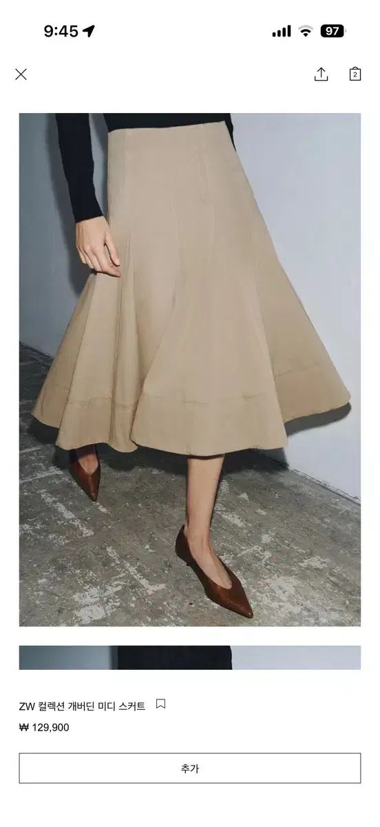 ZARA ZWコレクション ギャバジン スカート ミディ丈です。