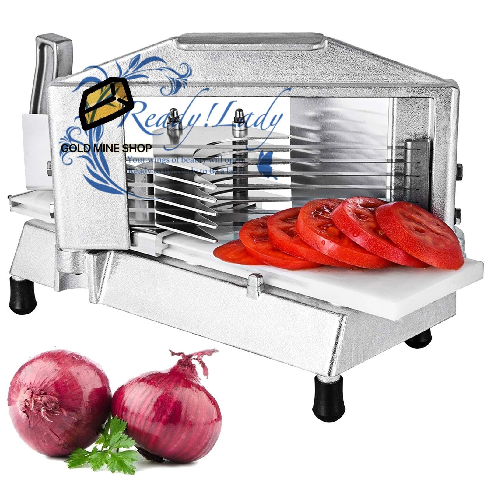 【頑丈なアルミフレーム】頑丈なアルミ素材で作られたこの業務用トマトスライサーは、コンパクトで頑丈、お手入れも簡単です。強化されたアルミフレームが機械の安定性を高めます。