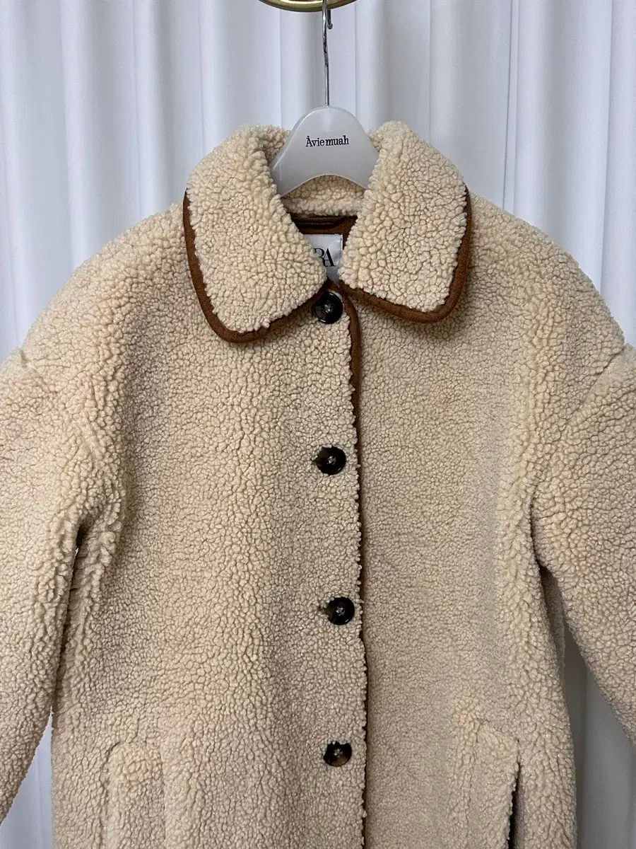 ザラ オーバーサイズ シアリング ジャケットです。ボア生地にブラウン カラー トリミングが ポイントの 商品です。