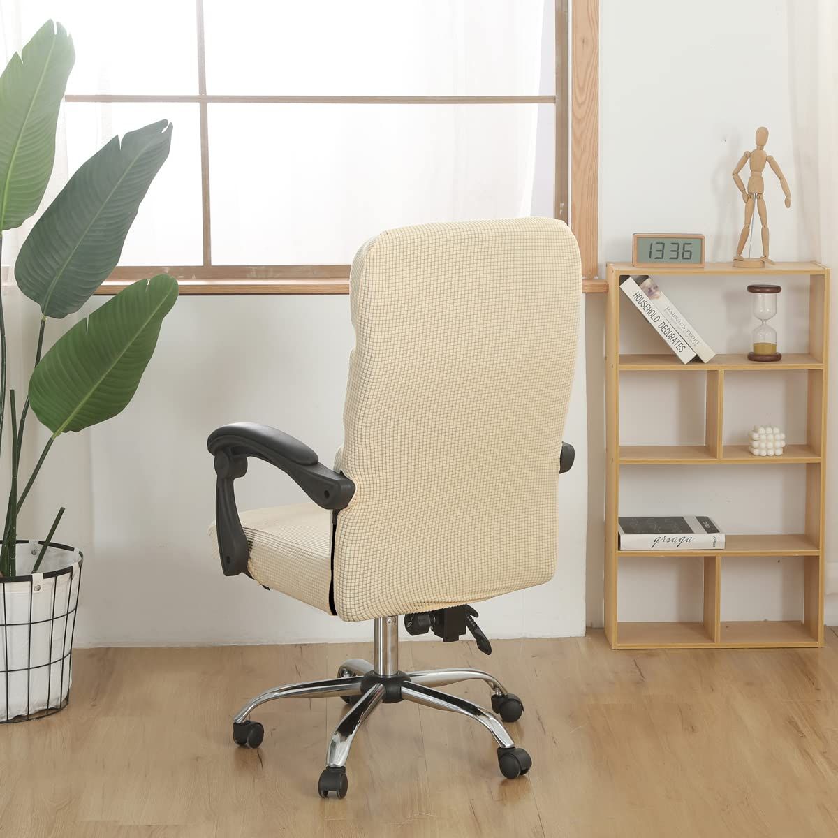 オフィス椅子カバー耐水性ストレッチジャカードコンピューターチェアアームレストチェア用スリップカバーオフィス用 事務椅子回転式椅子用 一体式ファスナー付き伸縮素材 取り外し ユニバーサル&取り外し な洗える L ベージュbeige