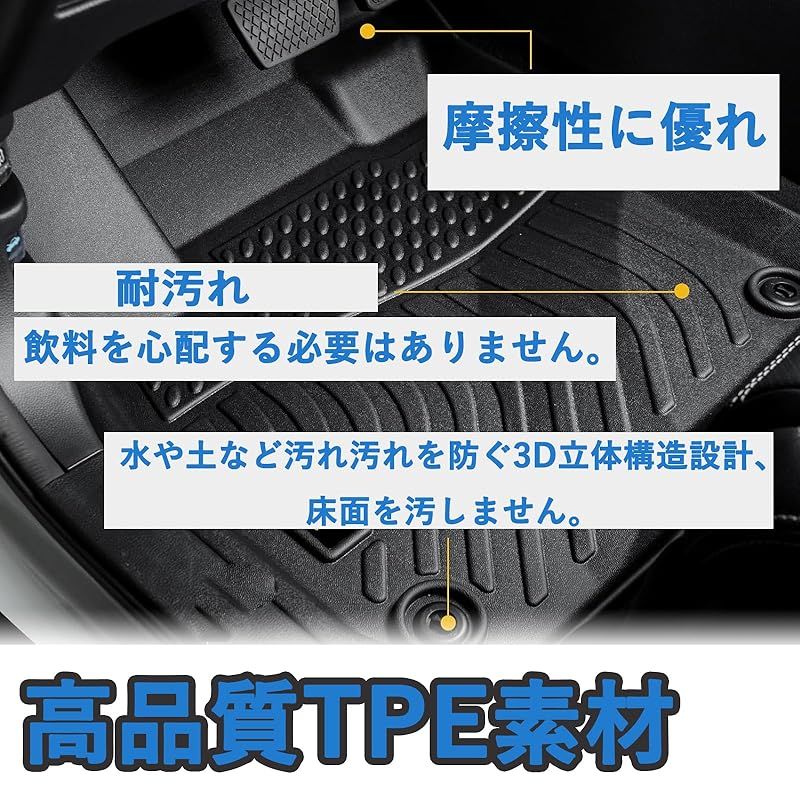 【取付簡単、専用設計】ネジや両面テープを使わずに、簡単に装着と脱着ができ、到着したすぐに取付できます。車種専用に設計されていることにより、フロアの細部に至るまでがっちりガードします。アクセルペダルとブレーキペダルに干渉しません。