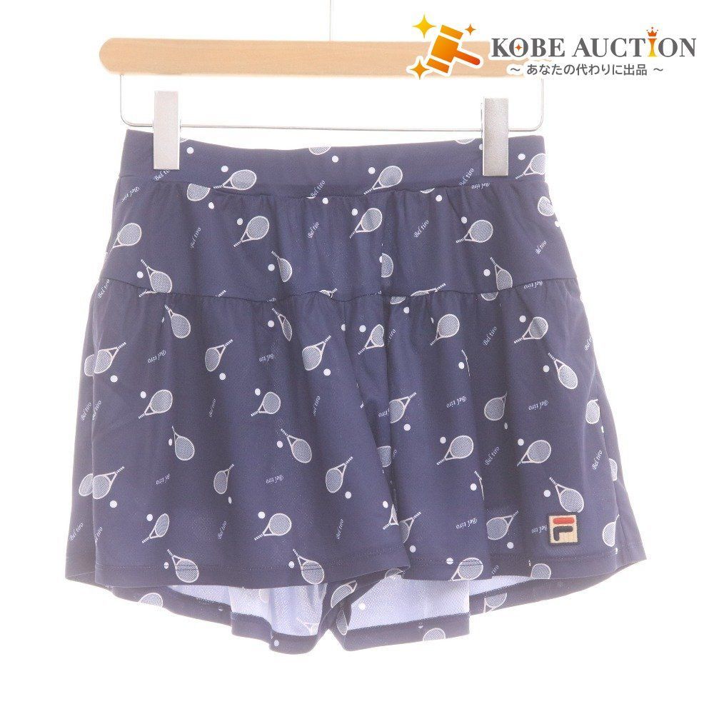 FILA フィラ テニスウェア キャロットパンツ ボトムス ラケット柄 総柄 ロゴ プリント レディース M ネイビー