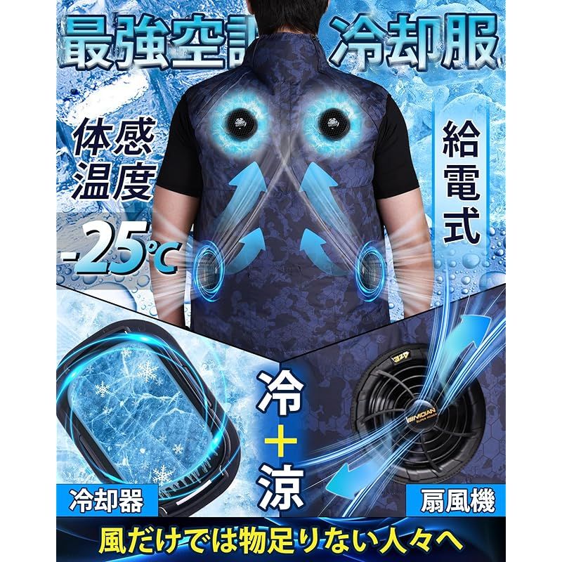 【熱中症予防&最高のギフト】夏の電気工事士、建設作業員、溶接工、工場作業員、配達員、シェフ、交通警察、農業、釣り、ゴルフなどに最適です。現場作業でも室内でも、暑くてたまらない調理場所や工場作業でも理想的な選択です。この冷却服は贈り物としても最適で、受け取った人も夏に涼しさと喜びを感じることができます。【付属品】冷感服×1、扇風機×2、冷却器×1、バッテリー×1、冷却器ケーブル×1、扇風機ケーブル×1、DC充電器×1、マジックテープX2、日本語取扱説明書×1。本製品は1年間の品質が付いています!