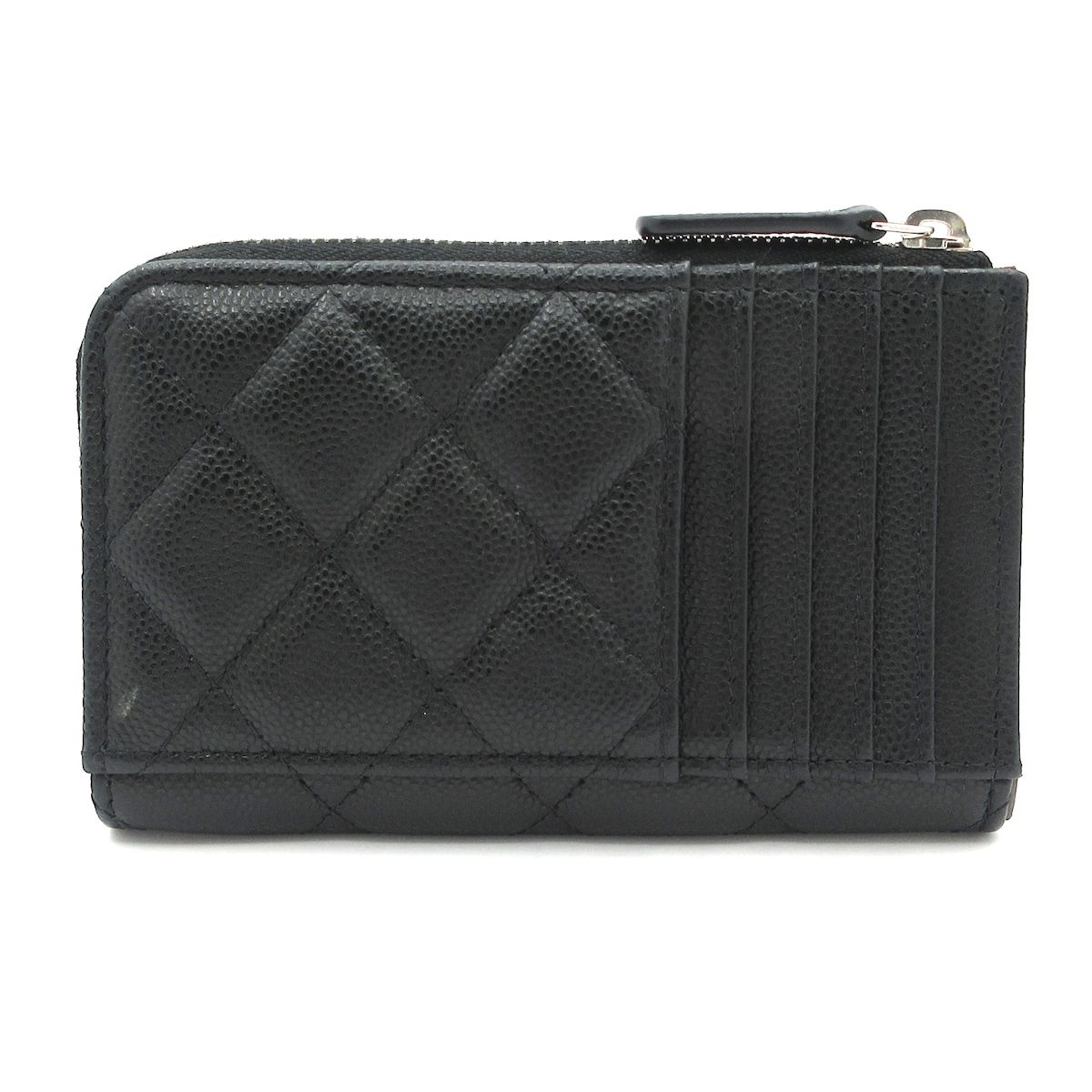CHANEL シャネル コインケース マトラッセ 黒 L字ファスナー シルバー金具