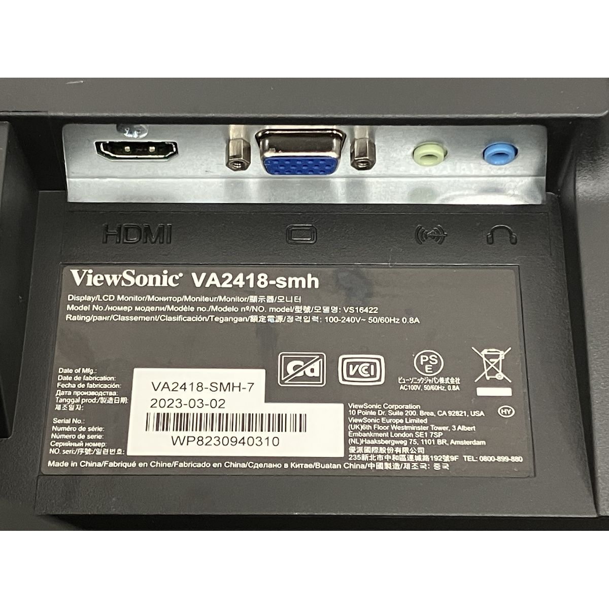 こちらは「ViewSonic VA2418-smh VS16422 2023年製 モニター PC周辺機器 新品 」でございます。