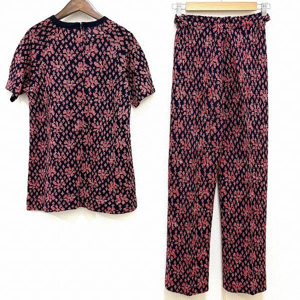 snc サイトウトヨコ 斉藤都世子 セットアップ 紺 ピンク ツーピース パンツ ニット 半袖 総柄 レディース 973007