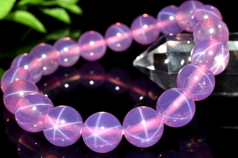 1点物 6条スター スターピンクサファイア 合成コランダム 9.5-10 mm ブレスレット パワーストーン 天然石 _MA 9030