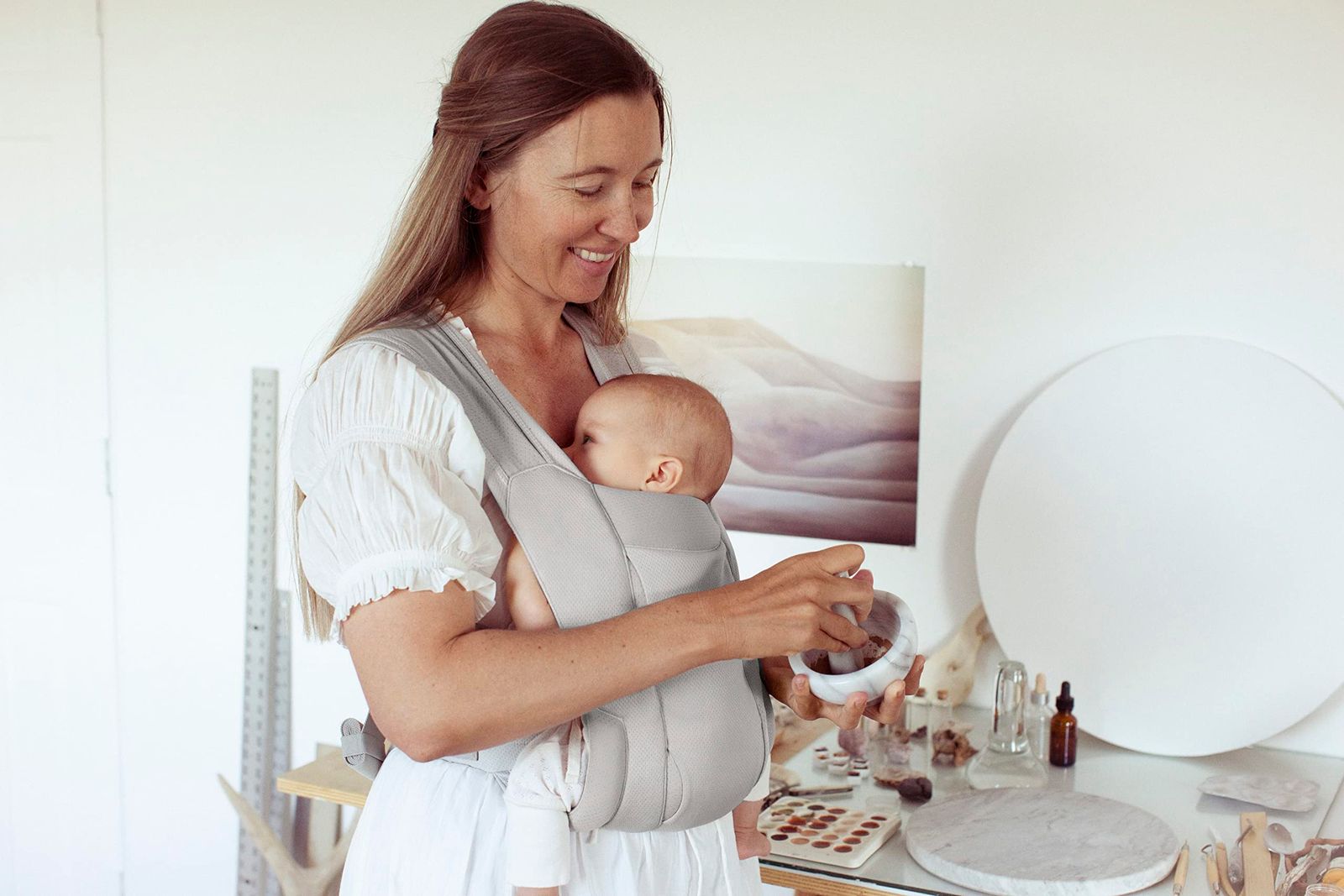 新生児期やおうち時間にオススメのモデル やわらかく体にフィットするSoft Airメッシュ生地で、親子が心地よい抱っこ。シンプルな設計ではじめての抱っこもスムーズに。