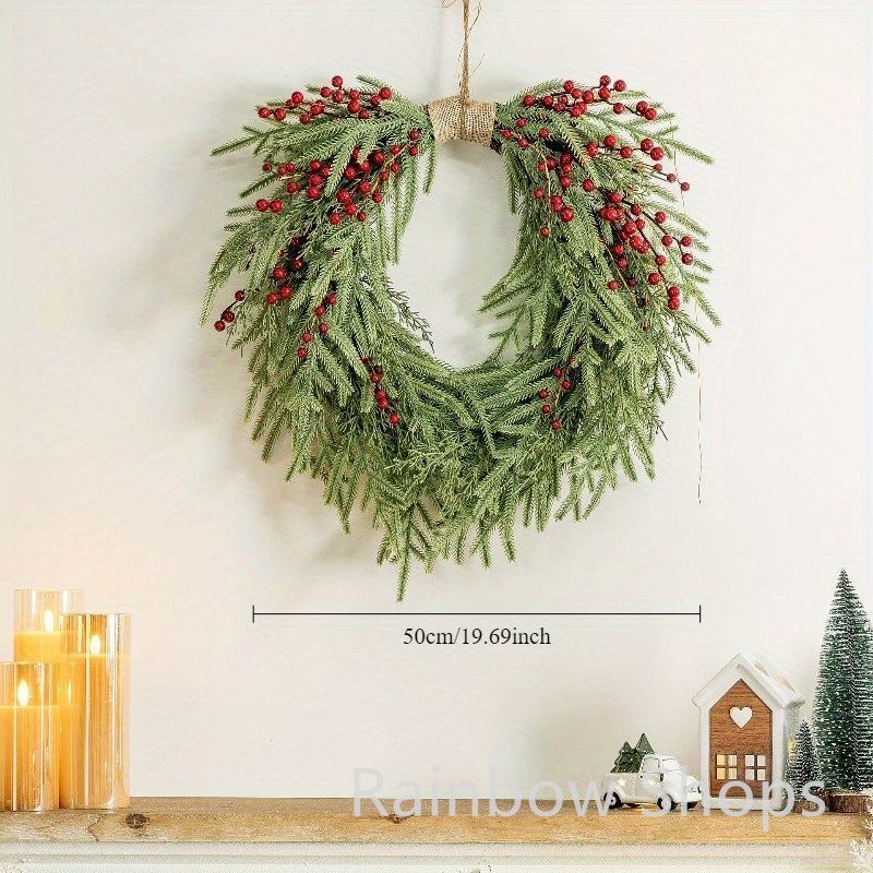 リース 伝統的 ベリーリース 再利用 なホリデーデコレーション 玄関ドア 暖炉用 祝祭 パーティー シーズン ナチュラル50 cm 大きなリース グリーン レッドcp 224