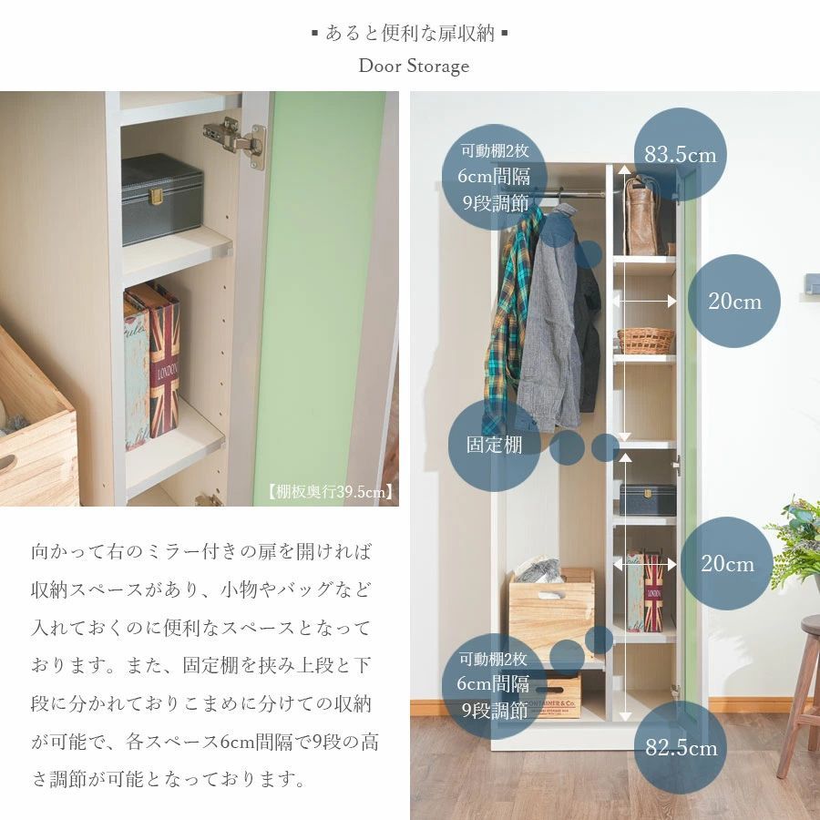 ワードローブ クローゼット オープン ハンガーラック 鏡 ミラー付き 姿見鏡 扉収納 完成品 国産品 幅60 cm 奥行45 高さ180 ハイタイプ 薄型 スリム ホワイト 木目 可動棚 ラック 洋服収納 オープン収納 おしゃれ シンプル