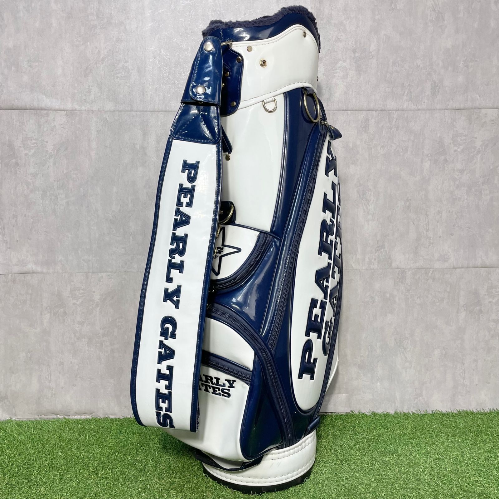 PEARLY GATES パーリーゲイツ キャディバッグ ゴルフバッグ エナメル スマイル ホワイト モデル キャディーバッグ 9.5型 約4.6 kg 46インチ対応