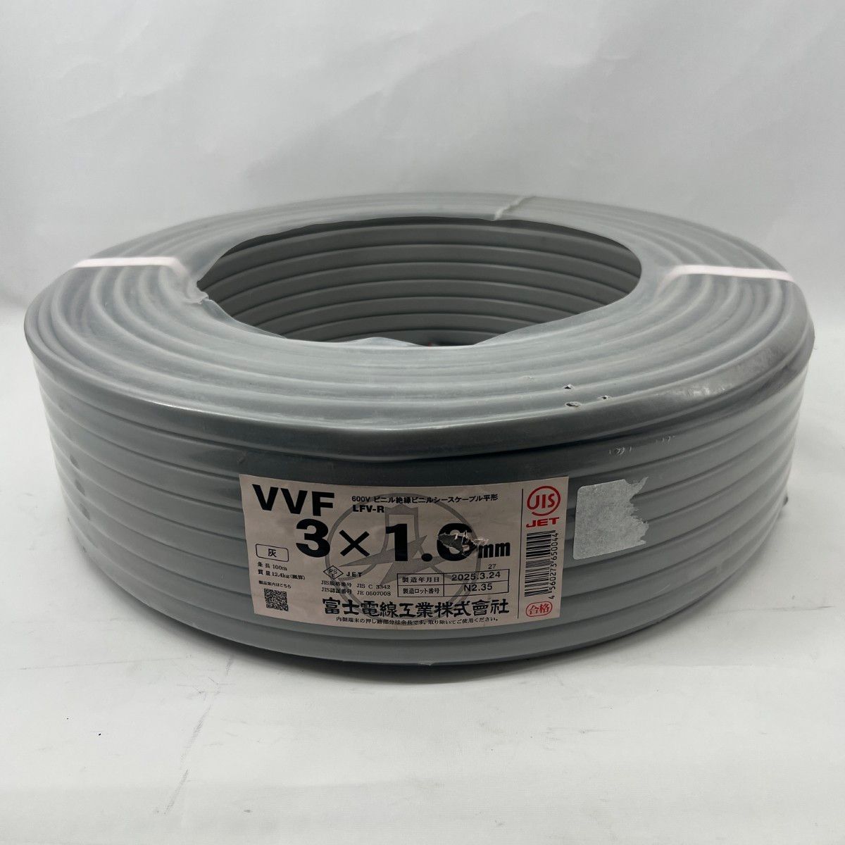 【商品名】新品 富士電線工業 電材 VVFケーブル 3芯 3× 1.6 LFV-R 100m 未開封品 グレー 2025年3月(令和7年)製造
