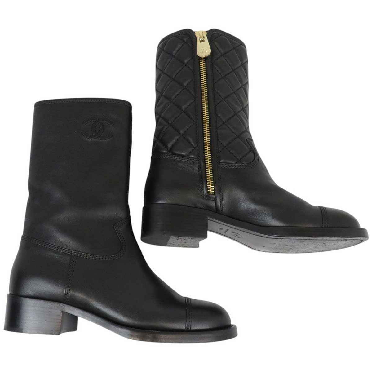 シャネル ココマーク マトラッセ レザー ショートブーツ G 36707 レディース ブラック CHANEL アパレル 小物