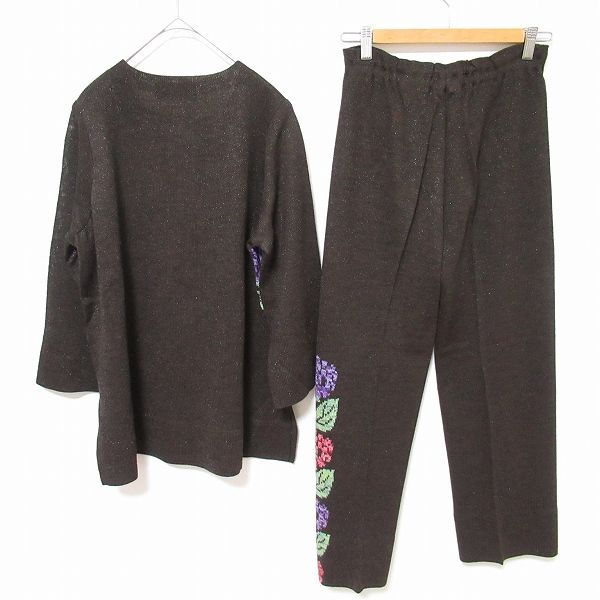 サイトウトヨコ 斉藤都世子 パンツスーツ セットアップ ラメ 花柄 ジップアップ ニット レディース a 964507 ss