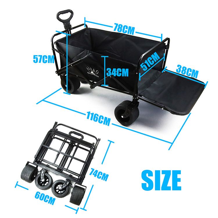 ■ハンドルは伸縮式で、簡単に使用できます。この折りたたみ式ワゴンは、600Dのダブルオックスフォード生地とPVC素材でできており、耐久性と防水性に優れています。