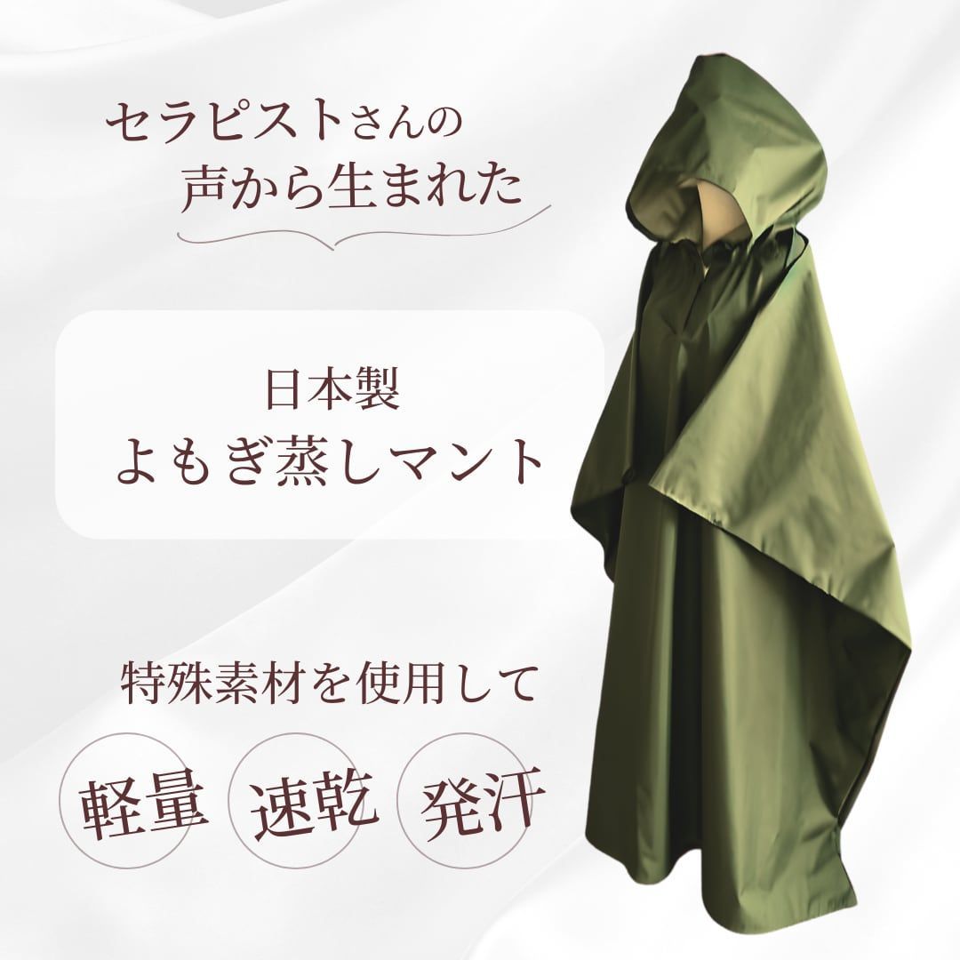フード付きのよもぎ蒸しマント。