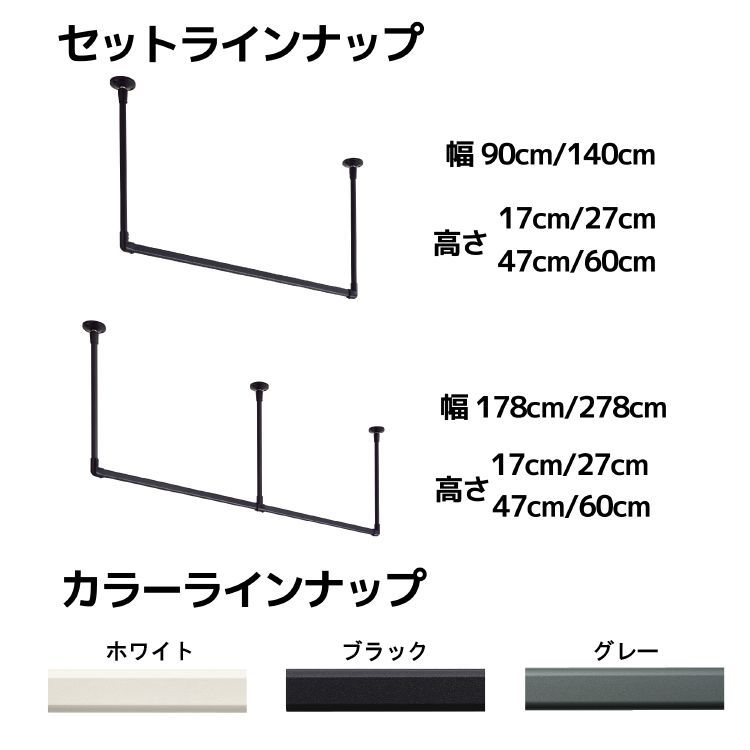 商品名:【幅90cm×高さ60cm ハンギングバー 】 TOSO トーソー スマートデザイン ディスプレイ 収納 ハンガーラック ランドリー 許容荷重10kg 取付け簡単 天井付け 幅90~ 高さ17~ 傷つきにくい 滑り止め付き 直送 TOSO