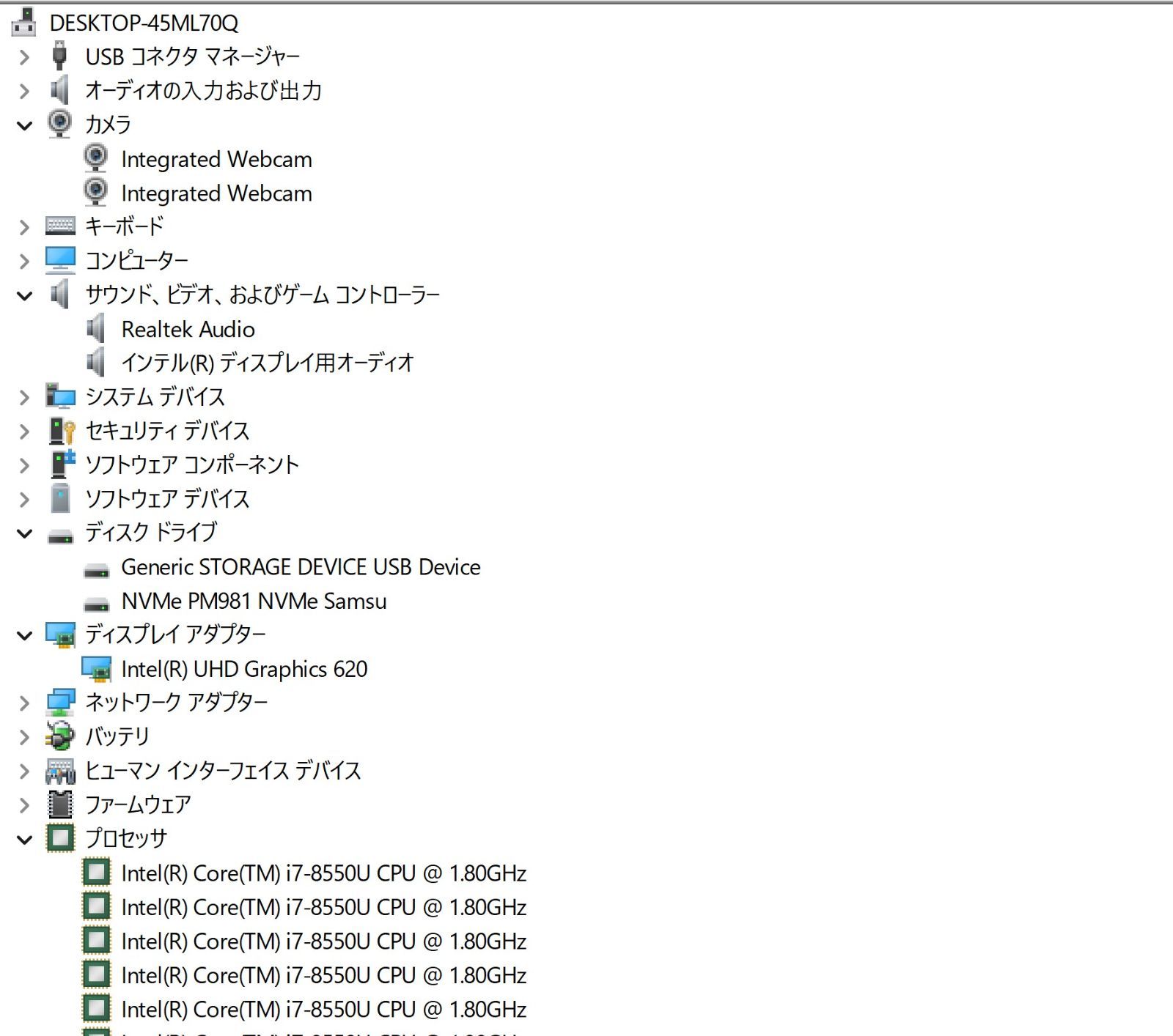 ■CPU:Intel core i7-8550U (@1.80GHz)