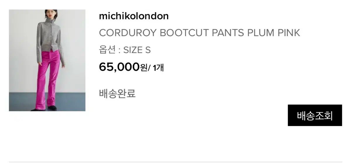 ミチコロンドン コーデュロイ ブーツカット パンツ プラムピンク