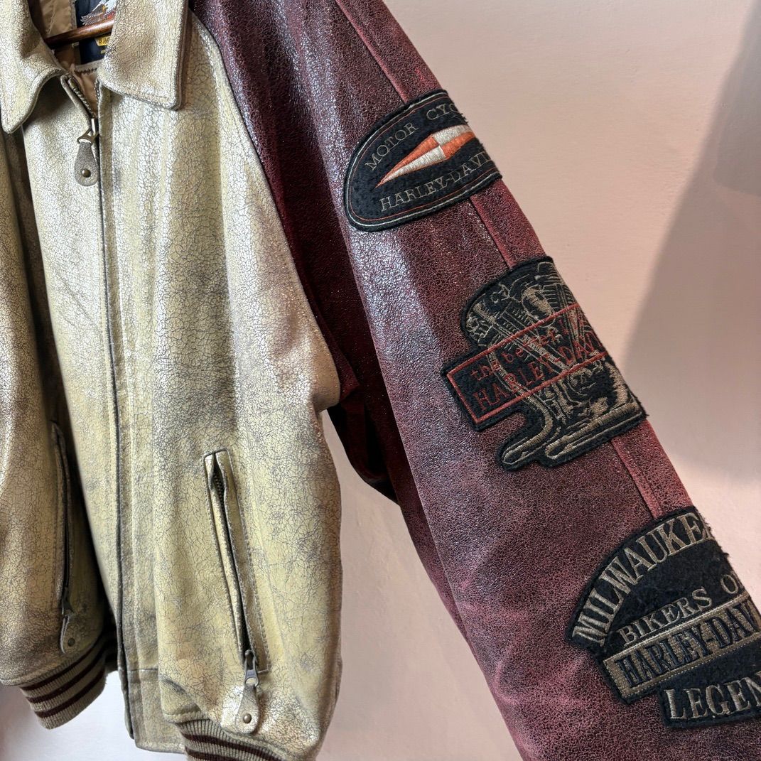 Harley-Davidson ハーレーダビッドソン レザースタジャン バイカーズパッチ 刺繍ロゴ ヴィンテージ