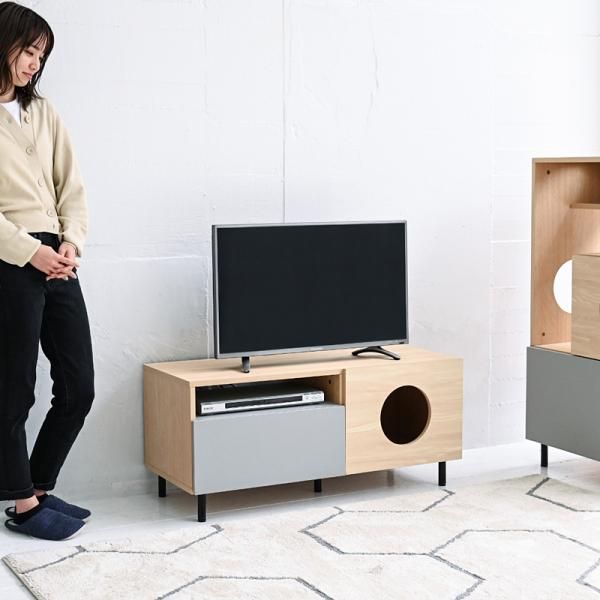 キャットハウス ねこ家具 おしゃれ テレビラック 猫が遊べる家具 リビングボード 薄型 扉付き 北欧 猫家具収納 猫家具テレビ台 猫インテリア avボード 猫と暮らすインテリア 猫インテリア家具 猫とインテリア 猫のインテリア テレビボード コンパクト 猫が喜ぶインテリア 猫トンネル サイドボード 30 インチ 32 型 37 40 42 ナチュラル グレー 幅100 奥行き 40 高さ 45cm