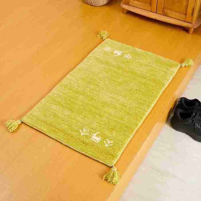 玄関マット 室内 50 x 80 cm ミニラグ ホノカ 対応 玄関 ラグ おしゃれ 屋内 ウール100% ラグマット ウールラグ 長方形 ギャッベ 手織り 防炎 オールシーズン シンプル グリーン ギャベ