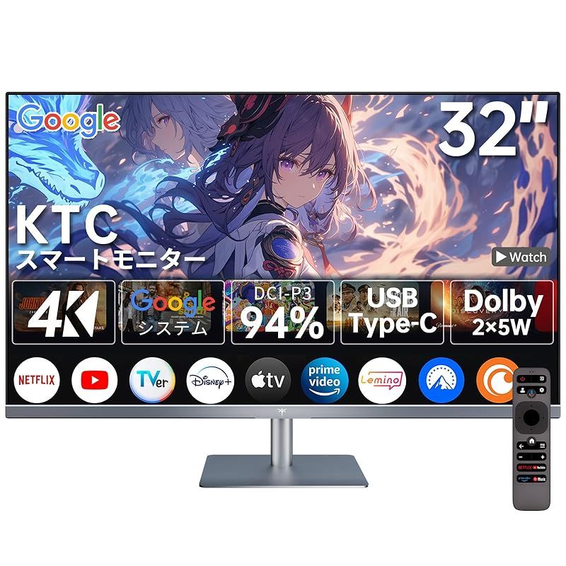 商品名:KTC A32Q8 スマートモニター 32インチ 4K UHD 3840 * 2160P | Google TV搭載|HDR10 | Dolby Audio対応|USB-C&HDMI&DP 多機能ポート|分割画面機能|キーボード&マウス一元管理|ストリーミング