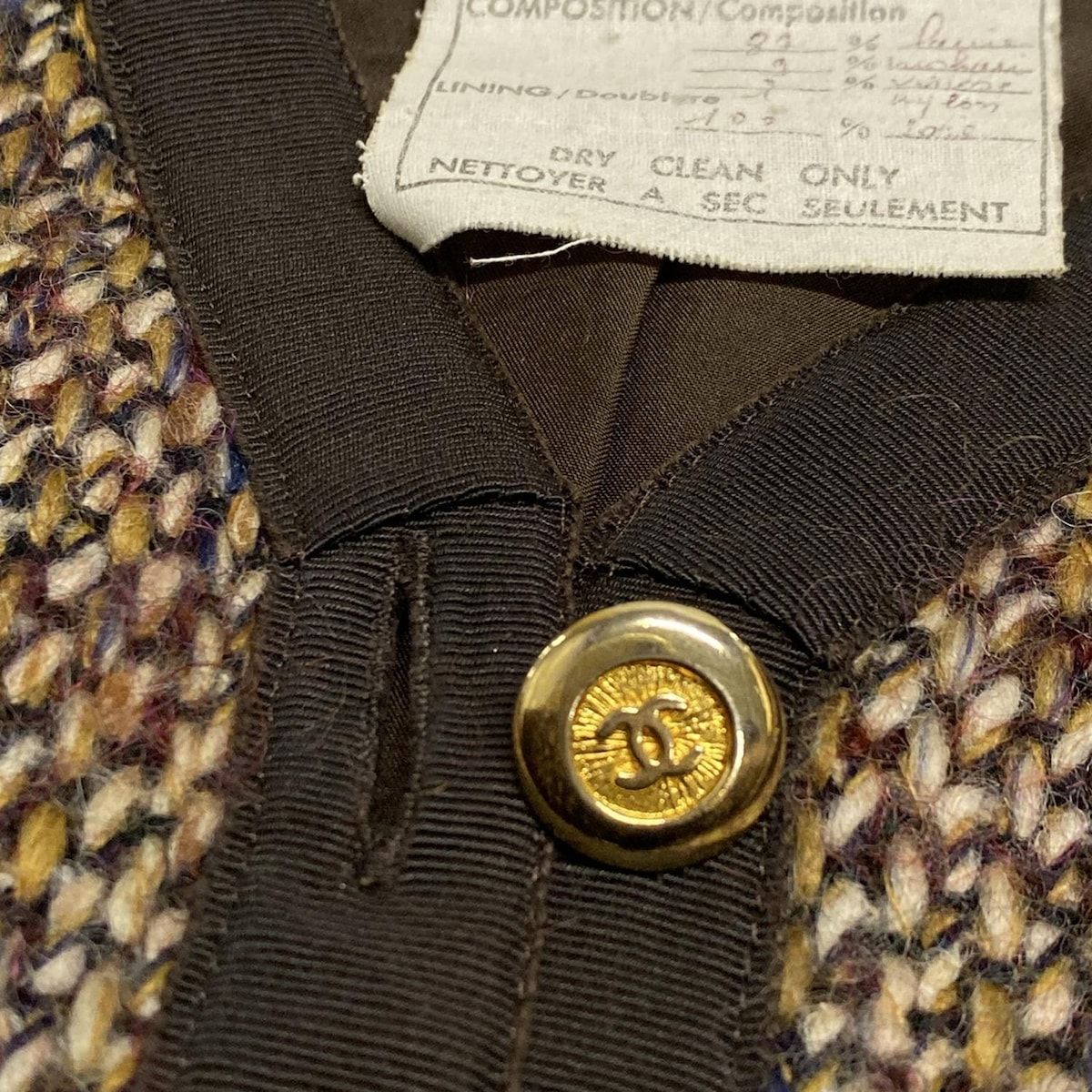 CHANEL シャネル ジャケット サイズ34 S レディース - ダークブラウン×ベージュ×マルチ 長袖 ツイード 秋 冬