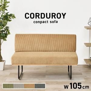 (約)幅105×奥行57×高さ68×座面高39cm 組立式 アジャスター付 構造部材:天然木、脚部:スチール、張地:ポリエステル お部屋のアクセントになるコーデュロイ生地を使用。肘が無いのでコンパクトタイプだけど座面は広々。ダイニングソファやワンルームのソファとしてもおすすめ。